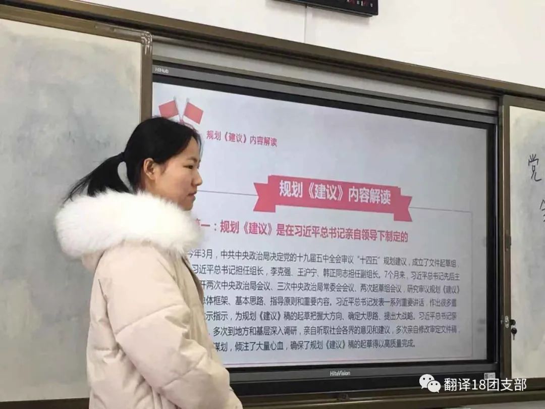 12月10日下午,为了深入学习宣传党的十九届五中全会精神,翻译18团支部在外语楼232教室开展了“党的十九届五中全会学习宣讲会”主题团会。团支部全体成员参加了此次团会。团会由团支书陈艾晨主持。班主任姜家兴现场观摩了团会。