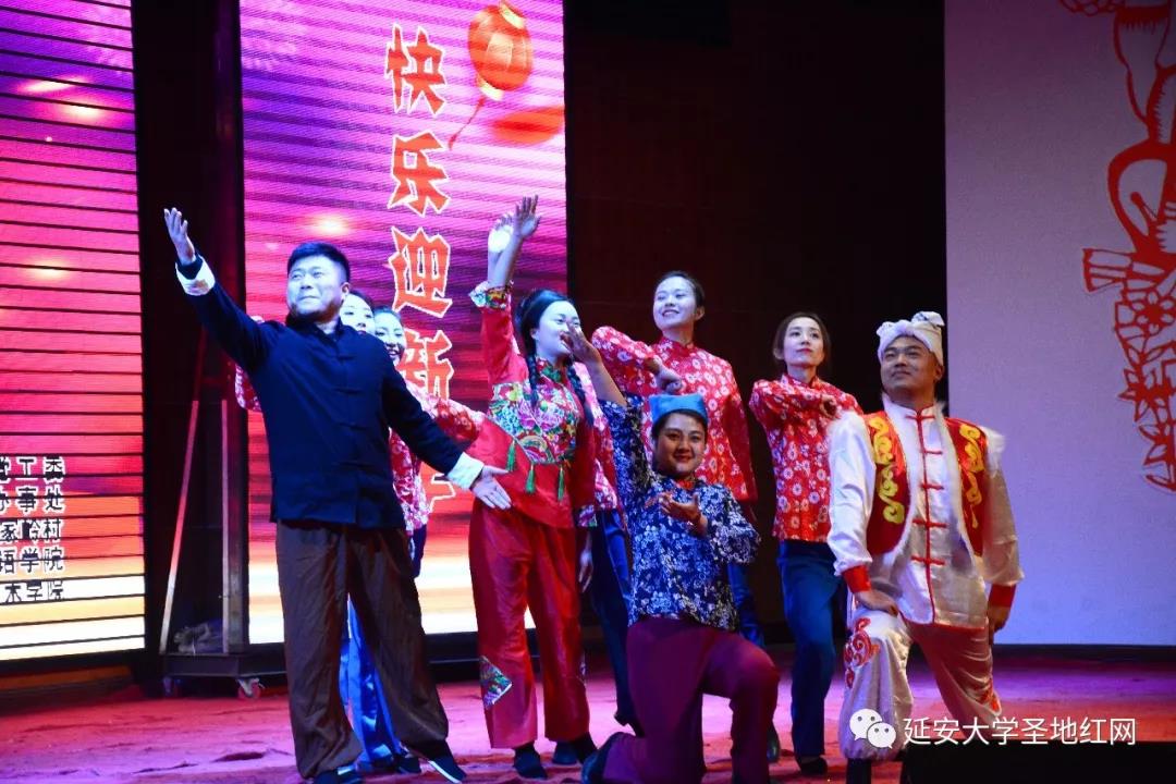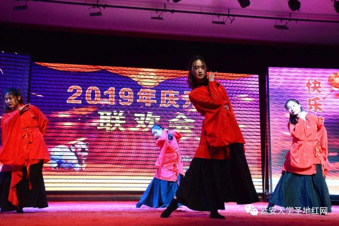联欢会上,杨家岭革命旧址带来的秧歌剧《兄妹开荒夫妻识字》以及民歌独唱《谈不成恋爱交朋友》展现了独特的陕北文化;杨家岭小学带来的舞蹈《习爷爷是我们的大朋友》展现了新一代的青春活力;宝塔区委党校带来的朗诵《相信未来》以及快板《夸延安》生动隽永;304am永利集团臧艺文带来的现代舞蹈《一半世界》热辣动感,18级汉教班带来的古风舞蹈《九张机》婉约优美,马非凡带来的歌曲《春天的故事》作为结束曲高亢嘹亮,把整个联欢会推向了高潮。